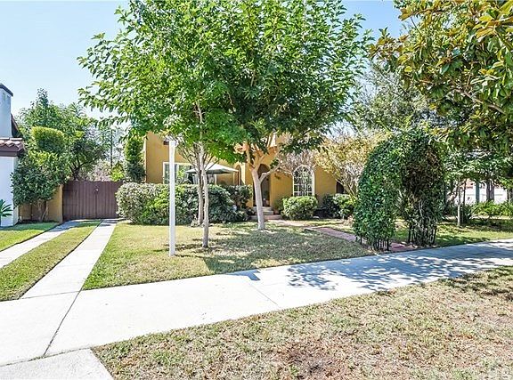 Spanish Revival style architecture at it's finest! Located on one of the two original Wrigley historic blocks. Preservation and pride of ownership resonates throughout this lovely home. The front yard has full shade trees highlighted by a Japanese maple. As you make way onto the front porch listen to the bubbling fountain and you'll see a small private patio, just imagine yourself enjoying coffee in the mornings. As you walk through the front door you'll be in awe of the classic Spanish features - this one has them ALL! Large picture windows on both sides of the living room with rare original mahogany built-ins. Plenty of alcoves and niches, coved ceilings and recessed lighting. The 72" dining room picture window has a Juliet style wrought iron feature with a gorgeous chandelier! Walk through the original butler door into the kitchen where historic meets modern and blends perfectly! Carrera marble counter tops, Kohler inset sink, upper glass & cherry cabinets, subway tile to match. The kitchen also has top of the line appliances which are all included! Original double hung windows, porcelain tile floors and LOTS of storage. Original hardwood floors throughout. The bathroom has the original Wrigley tile floor, gorgeous Carrera marble topped built in vanity, original deep tub with all modern fixtures. New copper plumbing and updated electrical. Hollywood driveway with a two car garage and workshop. Enjoy a large backyard to make your own! This unique home will not