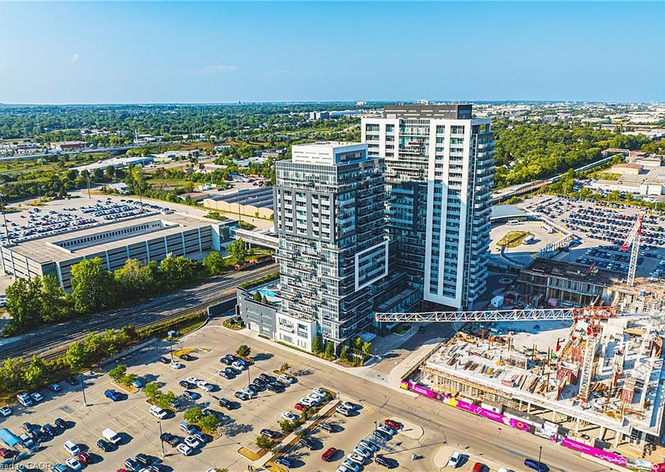 A SOPHISTICATED Corner unit condo in the highly sough-after Paradigm Gran - unit #2001! This espansive 2 bedroom, 2 bathroom, 2 car Tandem parking, this condo offers approximately 1039 sq ft of contemporary living space and is located on the 20 storey hig-h-rise known as Paradigm Grand Condo's in the Brant/Fairview area of Burlington. Designed with style and comfort in mind, the unit features northeast exposure, letting in ample natural light. Upgraded Sleek finishings including quartz countertops, upgraded cabinetry and stainless-steel appliances, flooring thru-out! Prime location adjacent to Burlington Go Station, making citywide commuting effortless! Quick and easy access via QEW. 403 and 407, simplifying regional travel..Mere steps from downtown Burlington, offering boutique shopping, international dining, waterfront trails, Spencer Smith Park, and lifestyle amenities. Close proximity to Burlington Centre Mall and large retailers like Walmart - enabling everyday convenience. Residents at Paradigm Grand enjoy an impressively curated array of resort-style amenities: Indoor pool, hot tub, sauna, fully equipped fitness centre, half court basketball gym, outsoor terrace with BBQ and lounge areas, dog park and wash stations for pet owners, multiple party rooms, guest suites, theatre room, kids' playroom, games room and more. 24 hour concierge, secure key-fob access, video surveillance and controlled entry systems - ensuring safety and elevated lifestyle.