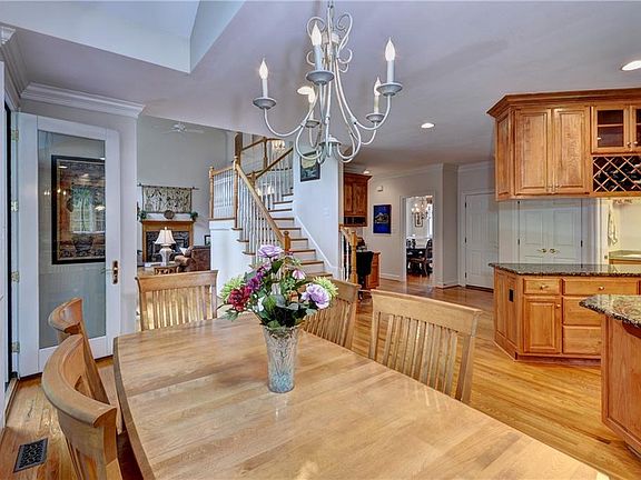 WOW! Truly an extraordinary home in sought-after Governors Land! Perfectly sited at the end of a quiet cul-de-sac, this all-brick residence has been meticulously maintained and is move-in ready. Offering 3,679 sq ft on a .65-acre lot, it is filled with natural light and custom millwork. The foyer is flanked by a home office with French doors and an elegant dining room with wainscoting and dentil molding. The great room showcases a dramatic wall of windows overlooking a private wooded setting plus a natural gas fireplace. The kitchen features a center island, granite counters, solid maple cabinetry, large breakfast area, pantry, and abundant workspace. A spacious utility room with sink and storage adds convenience. The first-floor primary suite includes a large walk-in closet and en suite with Kohler bubble tub and shower. Upstairs are three additional bedrooms plus a bonus/5th bedroom. Outdoor living offers a screened porch and stamped concrete patio.