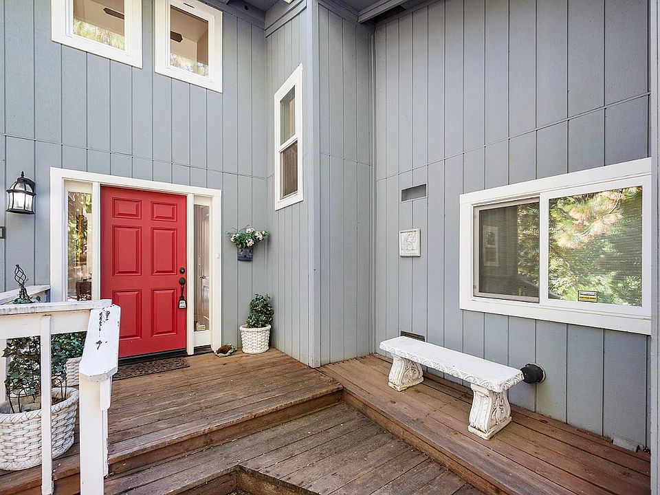 Charming and welcoming mountain cabin located in the highly desirable Blue Lake Springs area of Arnold, surrounded by tall pines and natural forest scenery. This home blends classic cabin character with thoughtful updates, offering a warm and comfortable setting for full-time living or a peaceful vacation getaway. The main level features one bedroom and one full bathroom along with an inviting living and dining space that enjoys tree filtered light and a cozy mountain feel. The kitchen has been updated over time with modern cabinetry, hardware, countertops, appliances, and wood flooring, providing a clean and functional workspace while still preserving the home's rustic charm. Both bathrooms have been tastefully remodeled with updated showers, vanities, fixtures, and wood flooring. Upstairs offers two additional bedrooms and a full bathroom, creating a comfortable layout for family and guests. Enjoy the serene outdoor setting from a spacious back deck and an upper balcony, perfect for morning coffee, seasonal dining, and enjoying the fresh mountain air. Dual pane windows add comfort and efficiency, and the location provides convenient access to lakes, Calaveras Big Trees State Park, scenic trails, winter recreation at Bear Valley, and the wonderful amenities of Blue Lake Springs.
