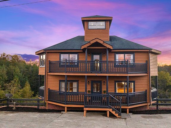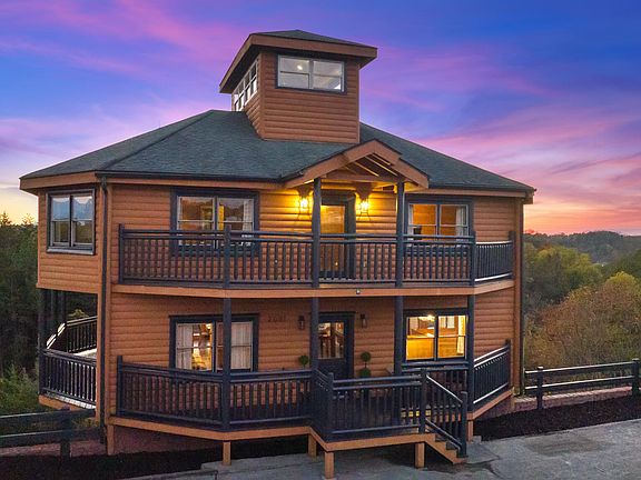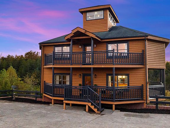 Discover an extraordinary STR in Sevierville, where mountain charm and modern luxury converge. This premier Smoky Mountain retreat boasts brand-new improvements designed for ultimate comfort and entertainment. Perched on a rolling slope and presiding over a glorious view of the mountains and nature's resplendent artistry, this 3-story log cabin makes a memorable impression. Refinished decks and porches adorn the home across all sides, providing breathtaking panoramas at any angle. A crow's nest tower with hot tub for peak views while soaking cements this amazing first impression, while parking is generous, allowing guests to come and go with ease. Step inside to a contemporary open layout embellished with attractive woodwork for that coveted cozy cabin vibe. Plentiful windows stream in light and capture stunning views, along with modern light fixtures to illuminate your days and nights. A gourmet kitchen with modern stainless steel appliances, gleaming countertops and refinished cabinetry opens to a sophisticated dining room for serving up meals in style. Steps away, the window-wrapped living room with fireplace exudes a relaxed aesthetic, complemented by luxury furnishing and a 50'' TV so you never a miss a moment of your favorite shows and sportscasts. Endless entertainments await throughout, including a freshly painted theater room with an impressive 85'' TV and vintage popcorn maker for the ultimate movie experience. A dedicated game room with arcade games and foosball also awaits, as does an amazing indoor pool offering year-around enjoyment! The bedrooms reveal sumptuous comfort and stylish décor, matched by attractive remodeled bathrooms outfitted with porcelain tile showers, new fixtures and modern vanities. Smart features are integrated throughout including a state-of-the-art smart door lock and thermostats for effortless control and security. Numerous updates keep this timeless home living like new, such as a recently replaced roof, two new HVAC units,, commercial dehumidifier in the pool room, new heat pump, new hot water heater, new pool heater, new mini split, plus a new washer and dryer. A peaceful setting yet tied into all the action, this prime location puts you close to Douglas Lake as well as the numerous recreation, shopping and dining experiences in both Pigeon Forge and Gatlinburg. This 3 Bedroom, 3.5 Bathroom Cabin is an impressive investment opportunity that is already on track to do $140k+ in gross revenue the first year, so make your move now and start the new year off right! Buyer to verify all information.