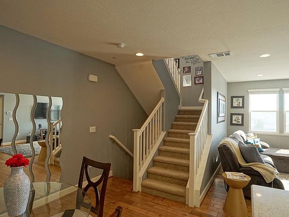 Desirable Townhouse at Newly Built Harmony Community with many Upgrades including Large Granite Kitchen Island, Stainless Appliances, Beautiful Hardwood Floors. Very Friendly Floor Plan Featuring Spacious Dining & Living Room & 1 Bedroom & 1 Full Bath on Main Level. Two Bedrooms & 2 Full Baths upstairs. Dual-zone Central A/C, Recessed Lighting, Balcony for Fresh Air.