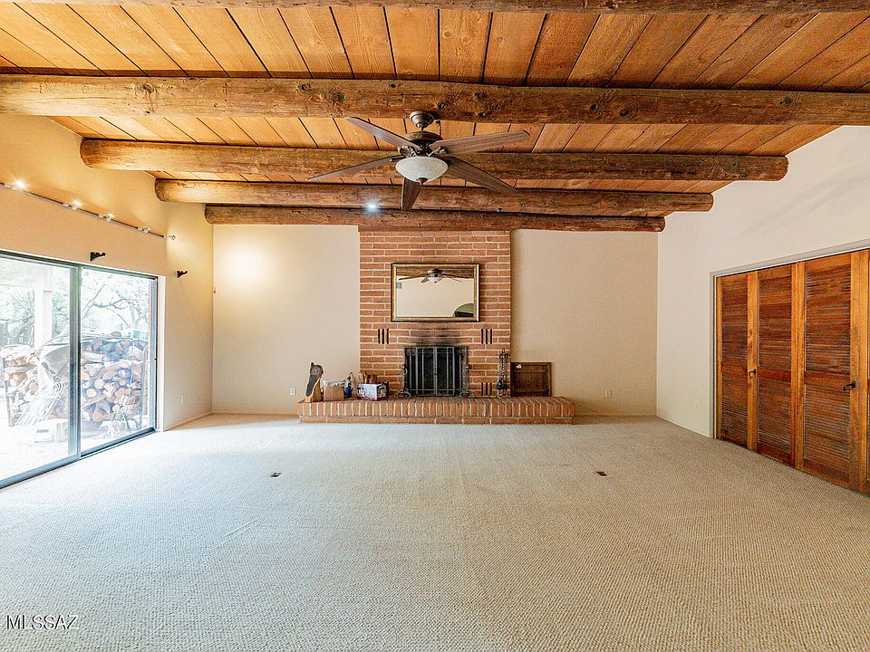 - Beamed Ceilings, Ceiling Fan(s), High Ceilings, Storage, Smart Thermostat, Living Room