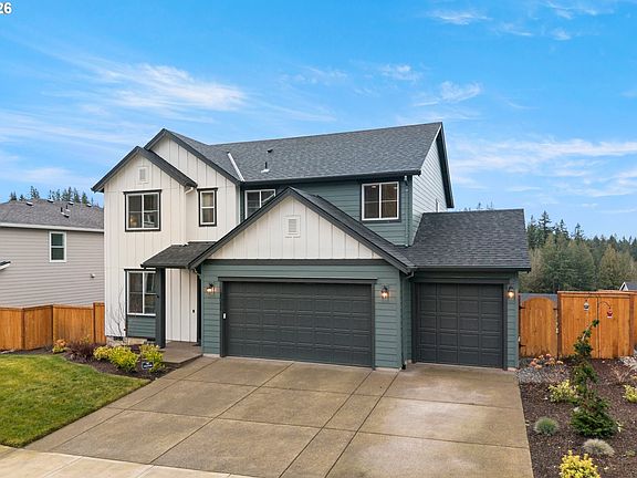 AMAZING VIEW, BONUS BATHROOM, 4 BR’s + LARGE OFFICE, 3 CAR GARAGE!! Refined comfort with a farmhouse design in the Hemingway floor plan. The moment you enter the wide foyer, tall interior doors, and high ceilings create a light-filled, welcoming atmosphere that feels both spacious and sophisticated. At the heart of the home is a true gourmet kitchen suited for everyday living and entertaining -GE Profile stainless steel appliances, a convection oven, a hooded cooktop, oversized island, and two pantries for exceptional storage. Luxury vinyl plank flooring flows throughout the main living areas adding both style and durability. The dining room is positioned to take full advantage of tree lined views, opens to a covered low maintenance deck perfect for grilling & relaxing. The living room is anchored by a sleek new Modern Ember electric fireplace, adding warmth and ambiance. A light filled main level office with oversized windows offers an ideal work-from-home setup. The backyard features tiered steps to a very accessible storage/crawl space, in-ground sprinkler system in the front, making outdoor living both functional and easy to maintain. The home is solar-panel ready, offering future forward efficiency and flexibility. Upstairs, the primary suite is a peaceful retreat with serene tree lined views and a spa-inspired en suite designed for unwinding at the end of the day. A second ensuite bedroom upstairs offers a full bathroom ideal for guests or multigenerational living. A spacious second-floor family room offers versatility and can easily function as a game room, study area, craft space, or additional storage, depending on your needs. Located near Mt. Hood’s lakes, hiking trails, and outdoor recreation, this home offers a rare balance of modern convenience and access to nature. This home is move-in ready! Transferable 9-year structural warranty. Buyer to verify all information pertinent to them.