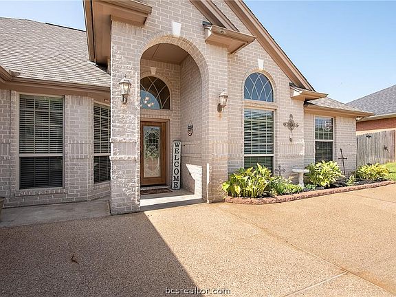 Stunning 3/2 custom built home with a beautiful and big office in the Realm of Kensington in the desirable Castlegate subdivision. This is a one owner property. It has high ceilings throughout and lots of crown molding and decorative trim work. The fireplace mantle is unique. Stainless steel in the kitchen with a 6 burner gas stove. The custom cabinets were built on site with molding inside. A very large primary bedroom with high ceilings, decorative trim work and rope lighting. The primary bathroom is large with separate vanities, granite, soaking tub with jets, vessel sinks and a separate shower. The primary closet is a huge walk-in with a built-in dresser with 10 drawers on each side. The office is custom designed with a built in oak desk, granite and plenty of storage. The second bedroom has a walk-in closet. Both secondary bedrooms are a good size with rope lighting. The secondary bath and 1/2 bath have granite and vessel sinks as well. An oversize garage that is 480 square feet. The home backs up to the walking trail in Castlegate with the view of the castle and the fountain. No back neighbors and an absolutely beautiful view. New roof in 2021. New French drain 5/22. Walk to the park and Forest Ridge Elementary. Community amenities include tennis courts, basket ball courts, playground, jungle gym, pool, walking trail and annual festivals. This home is in the College Station High School zone.