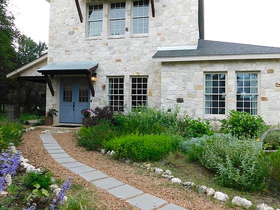 **PRICE IMPROVEMENT... MOTIVATED SELLER...** Welcome to your dream retreat on 2 serene acres in Cypress Springs on the Guadalupe, conveniently nestled between Austin and San Antonio. This custom-built haven combines French Country charm with Texas Farmhouse warmth, completed in 2020. Step through the gates into a European-style garden flourishing with vibrant Texas flora. Inside, be captivated by the 30-foot limestone wall sourced from several Texas quarries to get the look just right. The gourmet kitchen is a culinary masterpiece, boasting a leathered-marble island, custom cabinets, butcher block, and hand-forged hardware from San Miguel de Allende. The main level features three bedrooms, a mudroom, and a laundry, while the ideal-sized guest rooms offer luxury with 8-foot doors and a Jack and Jill bathroom set with Quartzite countertops. The piece de resistance? Your primary suite, a sanctuary of style and sophistication. With a private dressing room, walk-in closets, and double vanities topped with Quartzite stone, every detail has been carefully considered. Exterior doors off the primary and kitchen lead to crossvine-draped pergolas with a large fenced-in yard of meandering crushed granite paths. Upstairs, a charming loft space awaits, ideal for curling up with a good book, entertaining guests, or practicing yoga. With large picture windows, built-in bookshelves, and French oak flooring, it's a cozy retreat from the world below. Step outside to a pergola overlooking a fenced yard with crushed granite paths. Practicalities include a 2-car carport/pavilion with storage connected to the home by a convenient breezeway. But the real magic? Residents enjoy exclusive access to a private waterfront Guadalupe River park, just a walk around the corner from your front door. Welcome home to luxury living at its finest, where every detail has been lovingly crafted to inspire and delight. Schedule your private showing today as this gem won't be on the market long! ------ Here are some additional details worth noting: 1.5 stories; all bedrooms on first level with library/office on second floor with hill country view | 700-sqft* great room with a approx. 30-foot creamy limestone wall. (*approx) | gourmet kitchen with leathered marble island/bar | Dual-fuel convection and conventional range with custom hood | shelving under lights | filtered water system | private master suite with two walk-in closets, dressing room, large bath, and view to crossvine-drapped pergola and beyond | partially fenced for gardening and pets, around front and back of house | approx. 100sqft closed storage in two-car carport | foam insulation throughout house translates to lower electric bills | floored attic space | covered patio off kitchen for al fresco dining | water softener for entire house | quartzite countertops in baths and library between custom bookshelves | marble tile in showers | hidden closet under stairs | upgraded pocket doors for sound proofing entry areas and for maximizing space overall | double-hung windows on front of house | screens for all windows | French white oak stair treads and flooring in library loft with wine cooler | two zoned AC/Heat | gas fireplace | electric tankless water heater | dimmers on select lights.