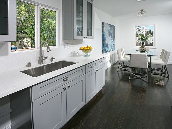 JUST REMODELED JANUARY 2018 FROM FLOOR TO CEILING & THOUSANDS OF DOLLARS SPENT! ALL NEW - Exterior paint, siding, fascia, foundation vents, light fixtures, garage door & opener, wood side gates, custom front landscape, sod, bender board, weed barrier in planters, bark, drip & sprinkler system, valves, drywall texture, two tone designer paint scheme, refinished & stained hardwood floors, door casings, interior 2 panel Cheyenne doors, aged bronze door hardware, door trim, mirrored closet doors, 6 inch baseboards, LED recessed lighting, schoolhouse floating ceiling light, LED dimmable Edison bulbs, Decora outlets & switches, copper plumbing, 14 seer York HVAC, ducting & air vents, NEST thermostat, dual pane windows, MILGARD QUAD 189.5 x 79.5 sliding door, smoke & carbon monoxide detectors, remodeled closets, Charleston ceiling light, expanded/enlarged kitchen, Shaker style cabinets w/glass doors & crown mouldings, self-closing cabinet doors/drawers, 2 lazy Susans, quartz counter tops, herringbone 1 x 3 mosaic backsplash, MOEN faucet & soap dispenser, stainless steel under mount sink, garbage disposal, ice maker water supply box, gas stove supply valve, expanded/enlarged master bedroom & bath, walk-in closet, herringbone weathered oak 3 x 11 floor tile, DELTA faucets, KOHLER under mount sink, vanity mirrors, shower tiles, custom frameless shower door, GLACIER BAY commodes, English Pub wall sconce & exhaust fans.
