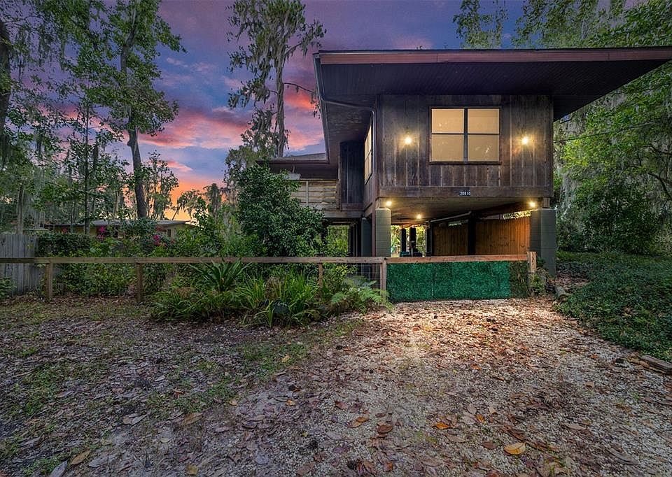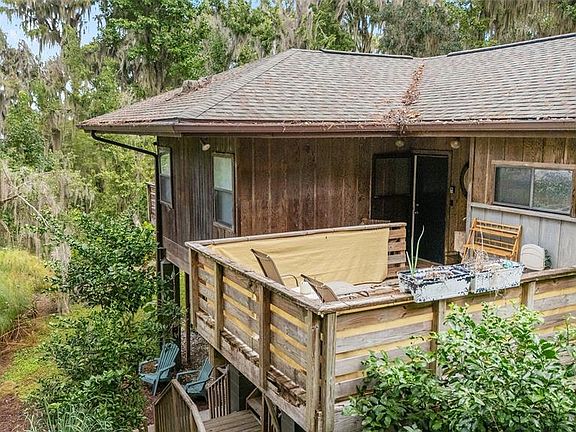 Nestled on the far north side of Little Lake Santa Fe, on the tranquil peninsula known as Martin Island, lies this enchanting lakefront gem. This quaint and quiet haven embodies the essence of serenity, making it the ultimate retreat for those seeking relaxation and connection with nature. The expansive open floor plan seamlessly blends indoor and outdoor living. Two open-air balconies offer breathtaking views of the surrounding waters—perfect for unwinding with friends and family or enjoying a peaceful solo retreat. The open layout provides ample space for comfortable living, with additional space to add sleeping accommodations for overnight guests. The neighborhood is exceptionally quiet, with only the sounds of crickets and frogs at night. The home is less than a mile from hiking trails at Lake Alto State Park, which offers a boat ramp for kayaks and boats, plus a small beach for swimming and relaxing. Conveniently located just 10 minutes from Waldo Flea Market, 15 minutes from Melrose, 20 minutes from Walmart, 25 minutes from downtown Starke, and 30 minutes from downtown Gainesville.