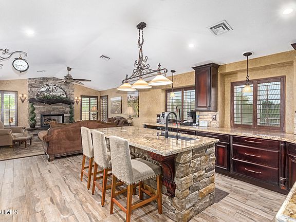 Beautiful home in equestrian neighborhood. Completely remodeled & 50+ solar panels & 2 batteries PAID! Everything has been updated within the last 9 years. New windows, flooring, bathrooms, walk in shower with body jets & towel warmer, custom kitchen with double ovens and huge island, paint, insulation, master closet is WOW, beautiful doors and First Impressions security door, pool pump. Planted over 150 trees for privacy, stunning custom gas fireplace, plantation shutters, tankless hot water heater, water filter, added recessed lighting. Great split floorplan! surround sound in FM. Lots of fruit trees and owners say they have great neighbors. All in sought after Orchard Ranch! Bring your horses and toys, RV parking Queen Creek has it all! Shopping, restaurants, places to work and play! Equestrian Center, Pecan Lake Entertainment Center, Fat Cats, Costco, doctors, dentists, chiropracters, nails, skincare, gyms..... and so much more! This home is super convenient to it all! You can walk to several places including Fry's, get some food, coffee or workout. There may be some traffic noise (until you get used to it) but it's worth it to have all this- the upgraded home, pool, hoa that still allows toys on site and all the QC amenities!