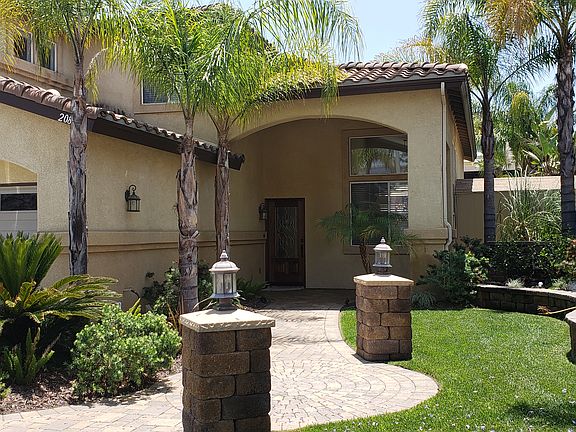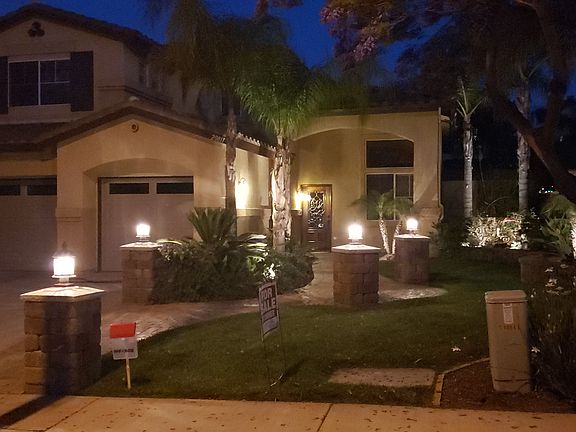 This lovely home, located in the heart of the highly desired neighborhood of Orangecrest, is a must see waiting for you! As you drive up to the professionally landscaped front yard with water feature, You come to a beautiful mahogany front door and as you step through you are greeted by formal living and dining rooms featuring vaulted ceilings, crown moldings and over sized windows that offer lots of natural light. As you move further into the home you will find an open floor plan that includes family room, eating area and kitchen, perfect for entertaining. The upgraded kitchen features granite counters and two tone cabinets. You will also love having a bedroom downstairs (use for office?), along with a over sized bathroom with a walk-in tiled shower and exterior door for access to the pool and spa. Upstairs through the double doors you will find the private Master Suite that features vaulted ceilings and two walk-in closets. The Master bathroom features dual sinks, a soak tub, separate large tile shower, and toilet area. There are three additional bedrooms upstairs and a full bathroom for the kids. This beautiful homes backyard is something to see it will transport you to the tropics with the built in BBQ and bamboo patio area equipped with fan and lighting and speakers. To complete the picture is the pool and spa with a pebble Tec finish At 2,621 sq ft, this is one of the nicest upgraded homes in Orangecrest a must see. The house has crown moldings and window trim throughout the home and has new beautiful luxury carpet, and has new painted exterior fascia and the entire interior. This home is turnkey, waiting for you to enjoy! Call for a private showing today!