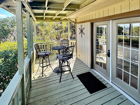 Nestled in the serene landscape of Spicewood, Texas, the single-family residence at 20815 Colorado Dr. W offers a unique opportunity to own a piece of the Texas dream. Unrestricted .51 acres just ONE BLOCK off of Lake Travis, between mile 25 & 26, it offers stunning panoramic views from a wraparound porch, with each room showcasing spectacular scenery. Imagine waking up each morning, opening the French doors to serenity and a view of Lake Travis. The property features three generously sized bedrooms and a dedicated office with built-in shelves. The fully remodeled kitchen, ideal for entertaining, boasts a large island with plenty of seating for any occasion. It can be sold fully furnished, making it a turnkey Airbnb rental. The .51-acre lot includes charming amenities like a gazebo, hot tub, and a shed that could become the ultimate she or he shed. Already connected to utilities, it’s easy to turn it into your dream retreat. For pet owners, a dog run and enclosed area provide a worry-free space for your furry friends to enjoy the outdoors among the deer. This home offers so much—seeing it in person is the best way to truly appreciate its value. LOW HOA fee covers the shared boat dock, and neighborhood park, just a short walk down the street.
