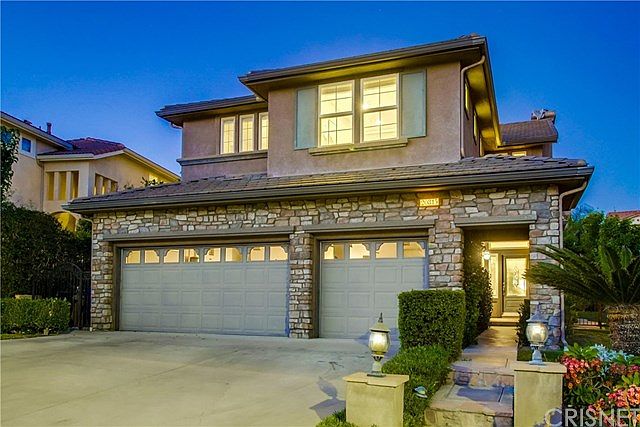 Welcome to 24-Hour Guard Gated Sorrento Pointe Community Nestled in the Serene Hills of Porter Ranch. This Popular Plan Offers Open Floor Plan, Soaring Ceilings, Neutral Earth tones, Stunning Wood Floors on Almost Entire First Level, High Quality Berber Carpet Upstairs, Ceiling Fans, Plantation Shutters, Lots of Natural Light. Spacious Family Room with Romantic Fireplace. Adjacent Chef's Kitchen Offers Maple Wood Cabinetry, Granite Center Island, Stainless Steel Built-in Refrigerator, High Quality GE Profile Appliances and Breakfast Area. Convenient Main Floor Bedroom and Guest Bath with Shower. Upstairs a Generous Sized Open Loft, Grand Master Suite with a Huge Walk-in Closet, Luxurious Master Bath with Travertine Like Tile Floors, Oval Spa Tub and Shower and Dual Sinks. Two More Spacious Bedrooms with Jack'n Jill Bath. Backyard Has Patio Area, Lush Green Foliage and Grassy Play Area and Ample Separation on Both Sides from Neighbors. Full 3 Car Garage, Central Vacuum System, Community Pools/Spa/Playgrounds. Much in Demand K-8 Porter Ranch Community School w/Great API scores. Nearby Parks, Restaurants, CSUN, Shopping Malls, Porter Valley Country Club/Golf Course, Easy Fwy Access to Downtown, also Coming Soon New Vineyards Shopping Center with Theater. Low HOA Dues, No Mello Roos.