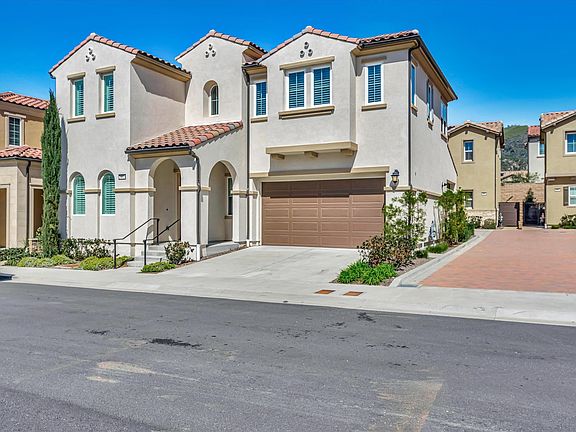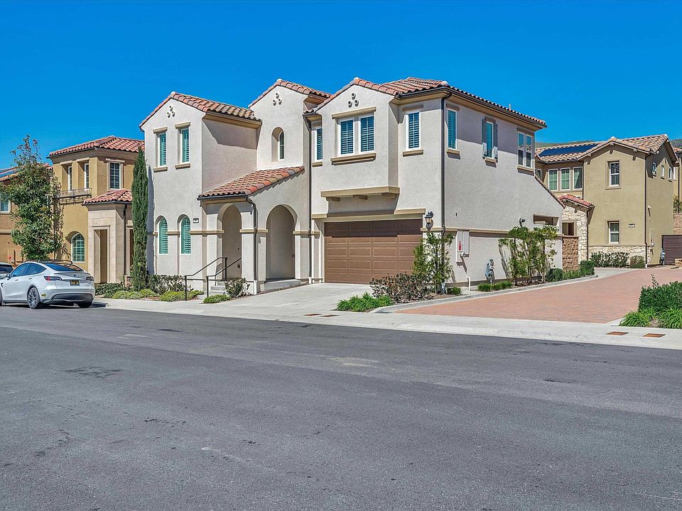 California Luxury Living at its finest in the security guard manned gated community at The Canyons at Porter Ranch. This house is the Santa Barbara floorplan from the Pointe collection. This light filled home built in 2021 has about 2189 square feet of living space and includes 4 bedrooms (one bed and a full bath on the first level), 3 beds, including the stunning master bedroom and bath, and an additional bathroom on the second floor, two car side-by-side garage, one operational EV car charger and a prewire for a second one, Fully paid-off Solar System & tankless water heater. The modern gourmet kitchen comes with a island ,spacious walk-in pantry, Quartz Countertops, upgraded kitchen to ceiling cabinetry, and stainless steel appliances including cooktop, stove, microwave, dishwasher, trash compactor, and refrigerator The second level features a large master bedroom with a nice private bathroom, tub, separate shower head, dual sinks with quartz countertops, a ceiling fan, a floating nightstand, and a large walk-in closet. A short walk to the award winning K-8 Porter Ranch Community School and a few minutes drive to the new Vineyards shopping center. The Canyons at Porter Ranch Community provides its residents with exclusive access to the clubhouse Home is Virtually Staged