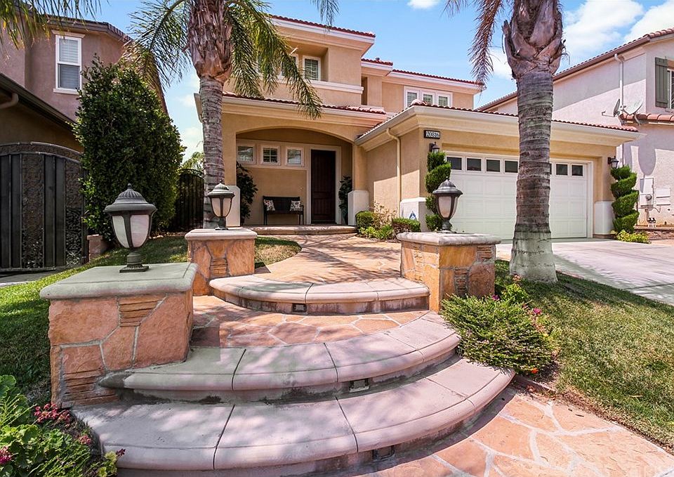 Welcome to this Stunning View Home Nestled in the Prestigious Guard Gated Sorrento/Meadows Community. This Home Features a Private Pool/Spa, Patio, Custom BBQ Area, 4 Bedrooms, 3 Full Bathrooms, Recessed Lighting, High Ceilings in the Living Room, Granite Counter-Tops, Marble Floors, Custom Draperies, Plantation Shutters, Tons of Windows for Natural Lighting, 3 Car Garage with Custom Cabinets and Epoxy Finished Flooring. 3 Bedrooms, 2 Bathrooms Upstairs, 1 Bedroom and Full Guest Bathroom Downstairs. Elegant Living Room and Adjacent Dining Room With Custom Made Built-In Oak with Glass China-Cabinet. Spacious Family Room With Cozy Fireplace, Custom Oak Media Niche, Open to the Chef's Kitchen, Granite Center Island and Breakfast Area Overlooking Breathtaking Views of The City, Canyon, Mountains, Sparkling Pool/Spa, Patio and BBQ Area. Custom Designed Wrought Iron Stair-Case Leads You to Upstairs Master Suite With Gorgeous Views, Private Jetted Oval Bath-Tub, Dual Sinks and Vanity and Spacious Walk In Closet. Two More Bedrooms With Jack and Jill Bath, Dual Sinks and Vanity, Walk In Closets and Full Laundry Room With Utility Sink. Nearby CSUN, Porter Ranch Country Club, Medical Buildings, Major Shoppings, and Porter Ranch K-8 Community School. New Vineyards Shopping Center with Theater, Restaurants and Shops Opening Soon Nearby. Low HOA Dues, No Mello-Roos!