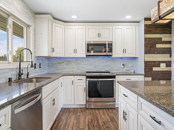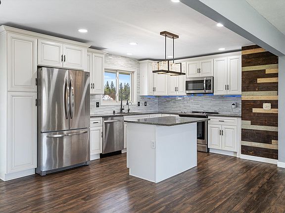 This updated, move-in ready home is situation on nearly 5 acres in the beautiful Medical Lake! Fully updated in 2022 with thoughtful upgrades including all new recessed lighting, texture, fixtures, flooring, and fresh interior paint. This bright and welcoming split-entry features large windows that fill the space with natural light. The spacious, updated kitchen includes modern appliances and under-cabinet lighting—perfect for cooking and entertaining. Main floor features a primary bedroom with access to a full bath and two more bedrooms. Downstairs, find a rec room/family room, a 3/4 bath with laundry space, and another bedroom. Enjoy efficiency with a tankless water heater. Step outside to enjoy the new 20‘ x 45’ concrete patio, ideal for gatherings or relaxing in nature, and it's wired for a spa or hot tub. The sprinkler system throughout the yard makes for easy maintenance. Plus a huge shop perfect for for projects, storage, or hobbies, RV hookups, and RV/Boat Parking. No HOA!