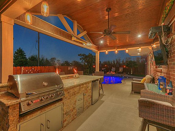 - Exterior: Patio/Deck, Back Yard Fenced, Sprinkler System, Outdoor Kitchen
