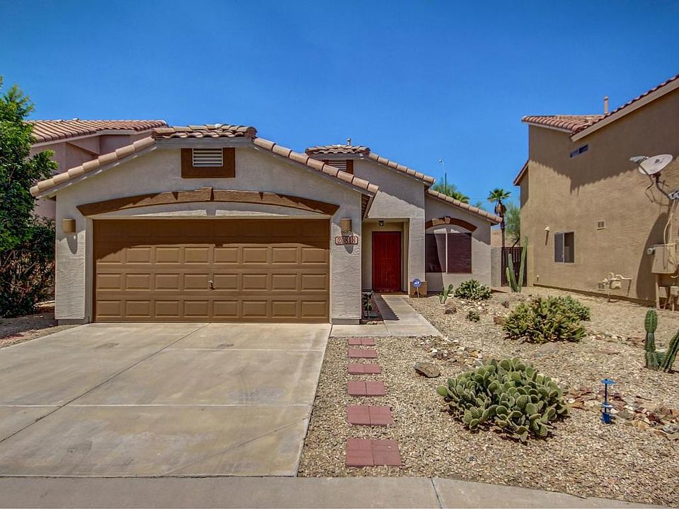 Visit this move-in-ready Opendoor home any time + No agent needed, no scheduling required, just come over + Access instructions are on the front door + Text or call (480) 351-6622 for more information about the home, Opendoor, or how the purchase. This three-bedroom home lies on a fully desert-landscaped lot and features a private pool and two back patios: one covered slab patio and one pavers patio covered by a pergola! The kitchen includes granite countertops, stainless steel appliances, a pantry, an island, and tile backsplash. The Master bathroom has dual sinks, with cultured marble vanities in the additional bathrooms. New heating and cooling in 2013. Other perks include vaulted ceilings throughout the common areas and in the Master bedroom, an indoor laundry, and two-car garage! Close to neighborhood park with playground, basketball court, sand volleyball court, and large lawn. Neighborhood borders desert preserve great for hiking and biking. Home is in close proximity to bus lines and I-101 access.