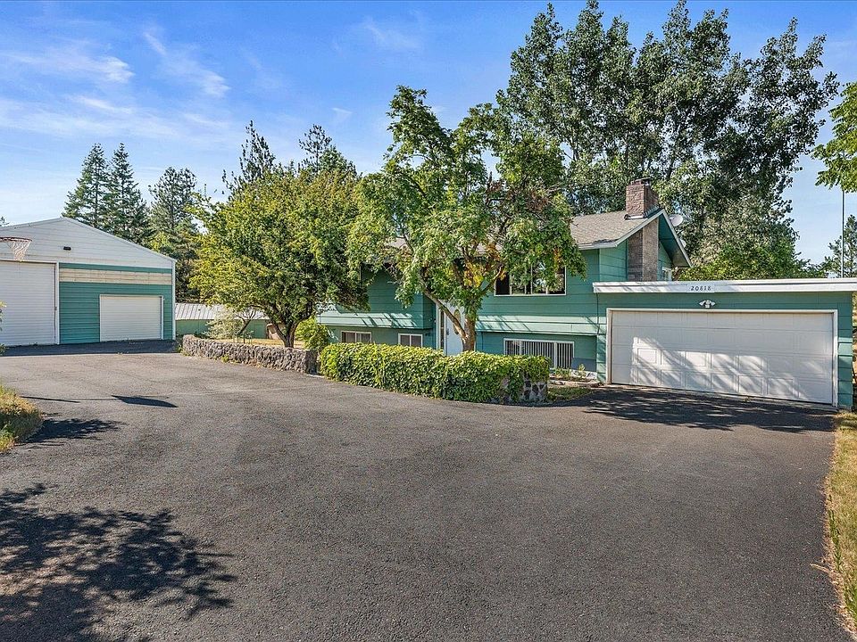 Welcome Home~Your own horse haven on 4.89 acres. Open kitchen with beautiful acreage view & newer appliances. New LVP and tile flooring, fresh paint, brick fireplace with insert too. 1086 square feet per floor with full walk-out basement & large laundry room-perfect for multi generational or an in law set up! Small horse setup, loafing shed, chicken coop w/power, corral with water, power and fenced pastures. Large irrigated garden area, sprinkler system, setup to install drip-line system. Paved circle driveway, 2 car attached garage and a must-see 40x30 shop ready for your boat, tools and toys! Peaceful country living and only 20 min to downtown Spokane, 15 min to the airport and 10 minutes to Fairchild AFB!