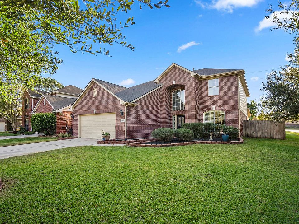 Set on a corner lot in the golf course community of Windrose, this inviting 2-story welcomes you home with warmth & thoughtful design. Downstairs, wood laminate flooring, soaring ceilings, & graceful archways connect the living spaces. The kitchen, designed for lasting style & everyday ease, features Corian counters, SS appliances & refreshed cabinetry. The spacious primary suite offers a calm retreat with a newly updated double vanity, soaking tub & separate shower. A generous laundry room adds extra convenience with bonus storage & room for a 2nd fridge. Upstairs, the loft-style game room provides space to work, unwind, or gather. A large covered patio extends the living space outdoors. Updates include new downstairs AC (2025), dishwasher (2023), updated electrical panel (2023) & roof (2020), offering comfort & peace of mind. Windrose offers 2 pools, tennis/pickleball courts, fishing lakes, walking trails, pocket parks & more! Just minutes from 2920, I-45 & Hwy 99—zoned to Klein ISD.