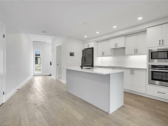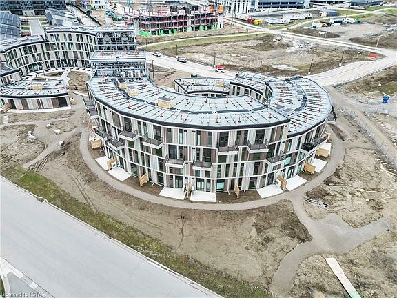 Come be a part of the future and make history! This isn't just another address or a roof over your head, this is the first of its kind! Come live and breathe the lifestyle you talk about and take action to live a green lifestyle nestled in London's West Five area which is North America's first and largest mixed-use Net zero sustainable community combining residential, office, retail, parks and so much more! This beautiful 2 bedroom, 2.5 bathroom condo is located in EVE Park which has received many accolades in the media and is hailed by CNN Style as The new architecture set to shape the world in 2024 . True to its name, this net-zero community runs only off the Sun, designed to maximize sun exposure Included is an automated smart parking tower with EV charging. This stores vehicles vertically freeing up space for gardens/landscaping and overall having a smaller footprint. As you enter the secure units with your state of the art key fob, you're greeted with a comfortable layout covered in rich material and loads of natural light, an inviting kitchen with beautiful built-in appliances and lovely backsplash to tie it together. Great size family room with convenient backdoor to the deck. Upstairs you have the primary bedroom that is spacious and features a 5 piece ensuite washroom with walk-in closet. Their is also another bedroom with its own 4 piece ensuite washroom. Engineered hardwood throughout, absolutely no carpet. Ready for immediate occupancy, come live at EVE park at a discount compared to the current builder pricing for a comparable unit!