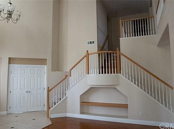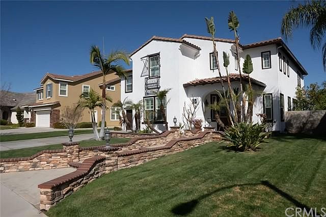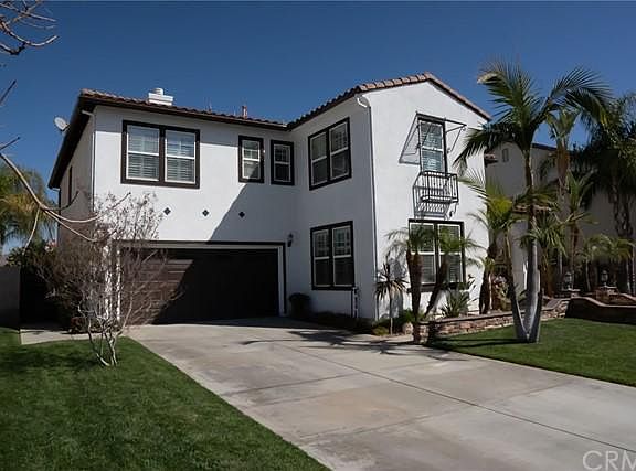 Stunning view home in Orangecrest community. Large home with pool, spa and no backyard neighbors. Fall in love with unobstructed views. Walking distance to parks and community center. This 5 bedroom home is move in ready for your family. Main level bedroom and bathroom for those who cannot do stairs. Upstairs is Master suite, jr. suite for those who need a little privacy, 2 other guest bedrooms and laundry room. There are wood floors throughout home with tile flooring in bathrooms and kitchen. Plantation shutters and window treatments on all windows. Vaulted ceilings with crown molding add to a dramatic feel of the home. Built in cabinets and an office space upstairs will allow for storage and organization. Garage has epoxy flooring and built in storage cabinets. The backyard features include custom swimming pool with spa and waterfall feature. The expansive views are gorgeous anytime of day. Have coffee in the gazebo and relax in your oasis. Property has lots of palm trees, slatted alumawood patio, stamped concrete, artificial grass with a small putting green, barbeque island with cook top and frig. This active community is terrific for families with parks, churches and restaurants close by.