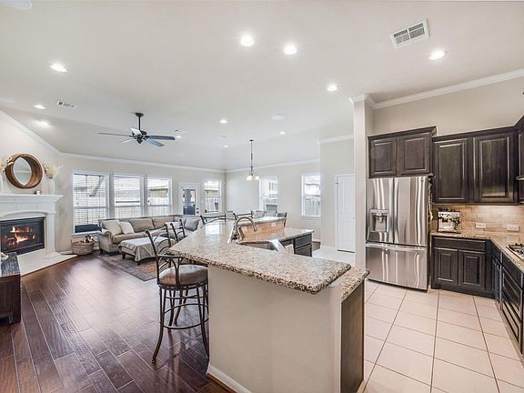 Welcome to 20822 Camelot Legend Dr, a gorgeous one story home in Albury Trails Estates. This home offers exceptional curb appeal w/a stone & brick facade and eave accent lighting, and inside you’ll find a spacious open-concept layout enhanced by abundant natural light, hardwood flooring, and elegant crown molding. The gourmet kitchen boasts stainless steel appliances, a 5 burner gas cooktop, under-cabinet lighting, and ample cabinet space, all flowing seamlessly into the spacious family room and casual dining area - perfect for everyday living and entertaining. Retreat to the primary suite complete w/two generous walk-in closets and a beautiful bath w/a soaking tub, separate shower, and dual-sink vanity. Each bedroom includes its own walk-in closet, providing ample storage space. Step outside to enjoy the impressive 25' x 10' covered patio, ideal for outdoor dining or relaxing evenings. 3 car split garage w/epoxy coated flooring. Conveniently located just minutes from 99 & 249.