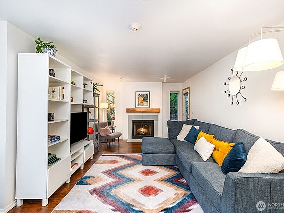 Welcome to your peaceful ground-floor retreat! This clean, bright and inviting 2B/2B end unit features a spacious great room with oversized windows, a cozy wood-burning fireplace, primary bedroom with en-suite, and a private patio — perfect for relaxing or entertaining. The interior is freshly painted, and you'll appreciate the full-size washer and dryer, ample storage, and two assigned parking spaces that come with the unit. This is a pet-friendly community with an unbeatable location, just blocks from Edmonds College, Lynnwood Golf Course, local coffee shops, restaurants, and easy access to I-5, Highway 99 and the Lynnwood City Center Station. A fantastic place to call home, or purchase as an investment property (no rental cap).