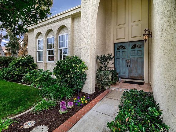 Situated on a quiet cul-de-sac street in a family-focused neighborhood in Chatsworth, this 4-bed, 3-bath designer's own home is nothing short of a showplace! Double-door entry into a modified open-plan living space featuring recessed lighting and engineered wood floors throughout. The step-up living room is bright and inviting, with a fireplace accent. Step down into a cozy dining room, perfect for entertaining. Kitchen has a clean and contemporary style with stainless appliances, high-top breakfast bar, and dining area with French doors opening to the back patio. Comfortable family room features built-in desk and storage and French doors to backyard. Downstairs bedroom offers privacy and can be converted into a home office or den. The bath makes efficient and creative use of space with a wonderful contemporary feel. Upstairs, spacious master suite features double-door entry, dual closets, including a sizable walk-in, and glass door access to private balcony. En-suite bath features double sinks and granite vanity and oversize shower. Two additional sizable bedrooms feature large, light-filled windows and share a full hall bath with modern touches. Covered, tiled back patio area features outdoor pass-through from the kitchen and built-in barbeque area, and a large pool and spa provide a lovely retreat. Ample greenery and raised beds, perfect for either flower or vegetable gardens. Conveniently located near schools, shopping, dining, and recreation.