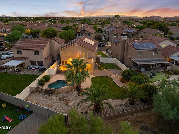 Very recent closed sale in Arroyo Rojo similar sqft, no pool, or preserve view to the back sold for $649K. Nestled in a vibrant community this exceptional home boasts 4 bedrooms & 3 bathrooms, all while offering desert preserve views. The premium lot is an entertainer's dream, featuring a built-in fireplace, plumed for an outdoor kitchen, a pool with water feature, and ample space for hosting events. Inside, you'll be welcomed by an updated kitchen showcasing Quartz countertops, stainless steel appliances, and dark wood grain cabinets. The main floor also includes a full bathroom and a versatile office/den with French doors.