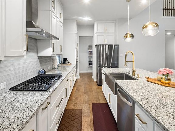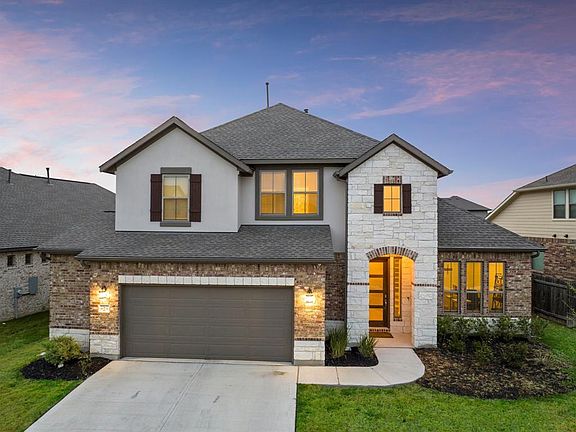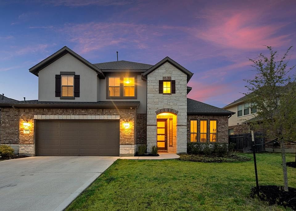 Magnificently Luxurious Newer Construction Home in Pflugerville! Picturesquely situated on an 8,206sqft residence in a highly desirable area, this 4BR/4BA, 3,156sqft property exudes sheer sophistication with beautiful exterior brick accents, neatly manicured landscaping, and a welcoming covered entrance. Newly built in 2021 and marvelously drenched in shimmering natural sunlight, the expansive interior dazzles with rustic wood flooring, soaring two-story foyer ceilings, a modern color scheme, an organically flowing floorplan, a staircase with stunning wrought iron spindles, and a convenient office with double entry doors. Thoughtfully designed for creative culinary pursuits, the open concept gourmet kitchen features stainless-steel appliances, granite countertops, a gas range, a wall oven, a built-in microwave, a dishwasher, a huge center island with breakfast bar, a fashionable tile backsplash, white shaker cabinetry, premium finishes, a breakfast nook, a butlers pantry, and an adjoining great room with towering two-story ceilings. Completely enclosed for memorable BBQs and cookouts, the entertainment-ready backyard includes a covered, epoxied patio, a sprawling greenspace, a privacy fence, and plenty of room for future customization. Blissfully relax in the oversized primary bedroom with tray ceilings, abundant closet space w/built-ins, and a chic en suite boasting a soaking tub, a separate shower, and a dual sink vanity. Three additional bedrooms are generously sized with dedicated closets and may also be perfect for guests or lifestyle-specific flex spaces. Other features: attached 2-car epoxied garage, laundry room, media room, game room, quick 24-mile drive from Downtown Austin, close to shopping, restaurants, Target, medical facilities, Blackhawk Golf Club, Stone Hill Town Center, SH130/Pickle Parkway, Costco, HEB, Typhoon Texas Waterpark, and schools, and so much more! Get all the advantages and start living the good life today!