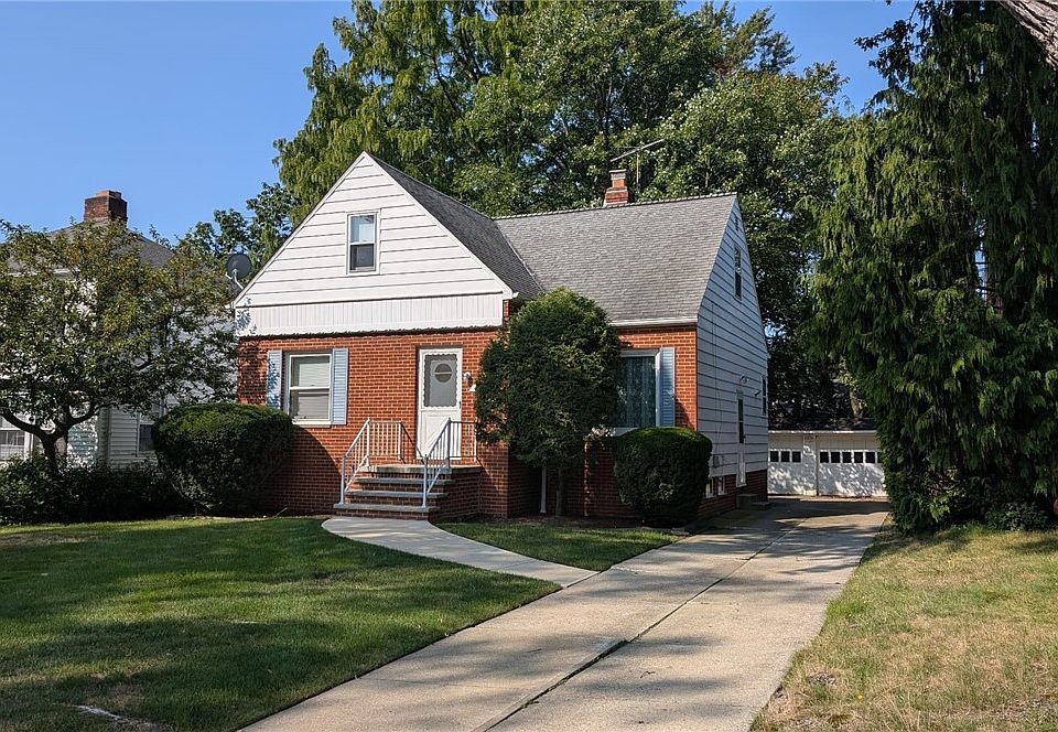 Welcome home to 2084 E 224th Street – an elegant cape cod located in one of Euclid’s most desirable and sought after neighborhoods. This charming home boasts fantastic curb appeal with a classic brick façade and recently updated front steps and walkway (2023) to the front entrance. This beautiful residence features 1365 sq ft of living space, 3 bedrooms and 2 full baths. On the first floor you’ll find 2 of the 3 bedrooms, a full bath, spacious living room and an inviting eat-in kitchen/dining area - perfect for meals and gatherings. The kitchen comes complete with plenty of cabinet space, a dishwasher, stove and fridge! The 2nd floor is dedicated to the 3rd bedroom – a private primary suite. The basement offers a large recreation room, a full bathroom with walk-in shower, sizable laundry area and utility room with a work bench. Step outside to a private backyard, an ideal retreat for outdoor entertaining, gardening, or simply unwinding in a serene setting. The two-car detached garage provides ample storage and secure parking. This home offers a tranquil lifestyle while being conveniently close to local amenities - only 15 minutes from downtown Cleveland. Fridge, range and dishwasher all convey! ONE YEAR HOME WARRANTY INCLUDED!