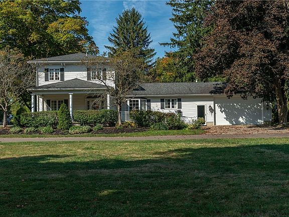 This is a truly special home. The elegant architecture and stately presence invite you to enjoy the wide veranda. Imagine spending a lazy day, rocking away, while sipping something to warm you up or cool you down. There are so many ornate details and features to discover along with 3.5 + acres. The sweeping ceilings and wide entry ways make for a beautiful flow which is designed to create a comforting and welcoming atmosphere. The home was built years ago but a full renovation gives a nod and a wink to the old farm house aesthetic with all the modern touches and updates. There is a first floor primary ensuite along with another first floor bedroom and full bath. Upstairs there are two additional bedrooms and a full bath. Hardwood flooring and a brick fireplace with expansive mantle cozy up the airy feel. Thoughtfully decorated and tasteful materials provide a bit of charm and and a timeless feel. The storage throughout the home is expansive along with an outbuilding for additional storage. Creature comfort is almost effortless with a whole house generator along with A/C. Classic elegance and modern design will ensure you FALL in love with this gem.