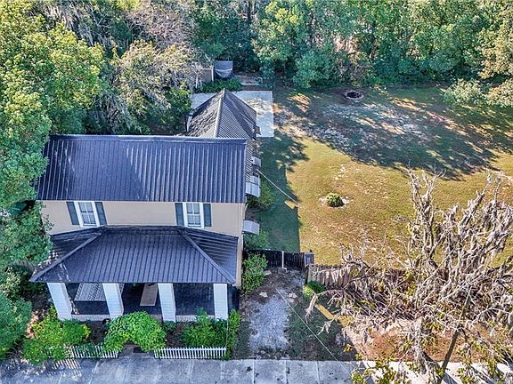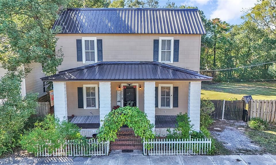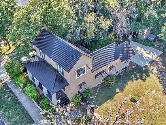 Historic Dunnellon Home Near Rainbow River offers the rare opportunity to own a piece of Old Florida history while enjoying proximity to world-class springs & natural beauty: Built in the 1900's, this two-story residence exudes timeless character & old-world charm on a generous .43-acre lot, just moments from the crystal-clear waters of the renowned Rainbow River & the Withlacoochee River. This is a unique chance to preserve & personalize a historic four-bedroom home that welcomes you with authentic architectural details that celebrate it's rich heritage. Original hardwood floors flow throughout, telling stories of over a century of memories. Distinctive walls & shiplap ceilings add texture & period-authentic appeal, with 2 ornamental fireplaces serving as stunning focal points that capture the home's historic essence. The home welcomes you with columns and a covered front porch, you enter a large great room which reveals the historic charm of the home with the focal point being one of two ornamental fireplaces, walk thru the arch to the bright open kitchen, laundry area & access to the downstairs bathroom & bedroom. The homes bonus room is off of the other downstairs bedroom & walk in closet. The access to the covered back porch invites you to the privacy of the .43 acres that is fully fenced. The back yard host a carriage house with a cement slab, ideal location for a workshop, she shed etc. The upstairs host the other 2 bedrooms & full bathrm. The front bedroom houses the 2nd ornamental fireplace. Both bedrooms have well sized closets. The home has a new metal roof, some windows, HVAC has been added and maintained. The home is ideal for front porch rocking chairs, large back yard open for family/friends and 4-legged family to enjoy the outdoors. Wonderful location walk to antique shops, restaurants plus 1/2 mile from the public boat ramp with access to the Withlacoochee & Rainbow River, 1 mile to Blue Run Park with trails following both rivers' edges, the trail goes all the way to Tampa. The home is within 20 minutes to the World Equestrian Center & 30 minutes to Ocala. The Gulf of Mexico is 15 minutes' drive. Convenient to I-75/Veterans Highway leading to Orlando & Tampa areas. This home has over 100 years of memories made and is ready to add more memories. The home is in the Dunnellon Historic District, zoned Residential Business Office giving Buyers a unique opportunity. The City of Dunnellon, has limited grants for this district up to $5,000, call the City of Dunnellon's community development department for details. The home is being sold "AS IS" with a hundred plus years of being lived in and loved.