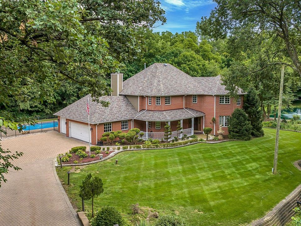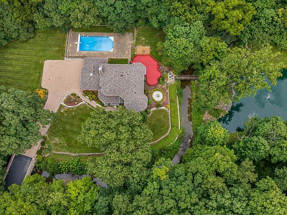 Motivated seller offers this once in a life time opportunity to own this absolutely magical 2.5 acre property with stately, brick 2 story home nestled in the woods! Beautiful,upgraded in-ground pool,bridges, private pond and gazebo are just a few of the amenities this home offers. 3500 Square foot home with BRAND NEW roof, finished basement, 9 foot ceilings, main floor office, updated primary bath with body sprayers, steam shower & heated floors.Kitchen with sub-zero refrigerator, maple cabinets, granite counter tops. Hardwood floors,solid wood,6 panel doors & beautiful woodwork through-out.Great finished basement with rec room, game room,possible 5th bedroom and 1/2 bath.3 car heated garage, newer driveway and stone bridge. Property is wooded, private & tranquil. Easy access to shopping,restaurants & I-80/57/355.