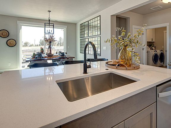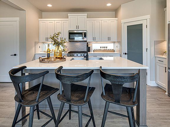 $5000 incentive towards closing costs and/or buydown when you use the builders preferred lender. The popular Everett floor plan, on Lot 34, comes with quartz counters, master on the main, master soaking tub, wood composition flooring, tankless water heater, air conditioning, fencing, HOA maintained front yard, tile backsplash in the kitchen and bathrooms, gas fireplace, pantry, and so much more. Conveniently located in southeast Bend, Oregon, Easton offers residents an abundance of community amenities. The master-planned community is an intentional blend of everything you need to thrive: residences, retail, swimming pools, green spaces, and more. Highly walkable neighborhoods and plenty of builtin open spaces let residents take advantage of Bend's clear, sunny days and high desert climate. Live, work, shop, and play within Easton, experience the convenience of living just minutes from practically anywhere in town. Photos of a like model and floor plans and finishes may vary.