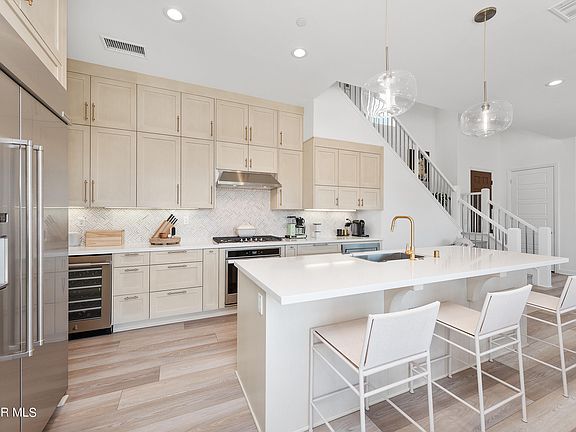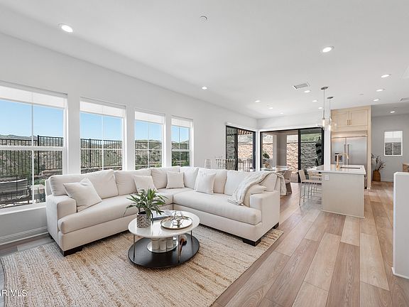 This luxury 4 bedroom, 3 bath Toll Brothers home located at The Canyons Pointe Collection lives like a 5-star hotel. Over 2,200 square feet of living space with spectacular mountain and city light views. Exceptional open concept floor plan, with gourmet kitchen, expansive center quartz island with breakfast bar, stainless Whirlpool appliances, built-in refrigerator, wine fridge, microwave, trash compactor, walk-in pantry, and farmhouse sink. Elegantly designed indoor-outdoor living spaces with two stacking sliding doors opens onto profesionally designed and landscaped yard with built-in barbecue, bar seating and outdoor fire feature. Downstairs bedroom with California custom closet organizers being used as an office. Upstairs spacious primary suite offers views and a luxurious spa bath with dual-sink vanity, separate shower, soaking tub and large, custom walk-in closet. Loft area with custom built-in storage is perfect for telelvision viewing. Beautiful white oak wood floors throughout, two-car garage, tankless water heater and smart home features. Located in a guard gated community with a resort-style recreation center with beach entry pool, spa, barbecues, and a state-of-the-art Clubhouse. Near major fwys, retail centers and award winning schools!