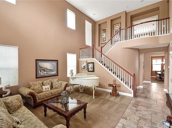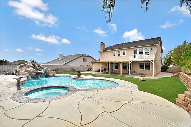 Highly sought after Home in the Prestigious Orangecrest Community. Located on a Large Private Lot, with Fabulous Views of the Surrounding Mountains & City Lights. Entertain your Friends & Family in your own personal resort style backyard with Sparkling Swimming Pool & Jacuzzi. This home has it all... 5 generous sized bedrooms, 3 baths, a Bright & Open Floor plan, Gorgeous Upgraded Flooring, Surround Sound Speakers, Ceiling Fans and Custom Crown Molding are just a few of the many upgrades! This Open Concept Home features a Large Living Room, Family Room, Dining Area, Indoor Laundry Room & Beautiful Kitchen. The Kitchen is equipped with beautiful cabinetry, Stainless Steel Appliances, Granite Countertops, Walk-in Pantry, Custom lighting & a Spacious Island. Off the Kitchen is the Living Room with Built-in Entertainment Center, Beautiful Fireplace and Sliding Door leading to your Gorgeous Backyard. Downstairs is 1 Bedroom with a Full Bathroom, perfect for visiting family or friends. Upstairs, the Master Suite is complete with a Custom Master Bath with Separate Walk-in Shower and custom tile work, Soaking Bathtub, Dual Vanity and a Massive Walk-in closet. The Master Suite has a private balcony with views of the mountains & city lights. Just sit back, relax and enjoy the beautiful scene from your bedroom balcony! That's not all...Walk outside to your back yard and take a dip in your Custom Rock Swimming Pool with Waterfall, Slide and Jacuzzi. This Backyard offers a Large Covered Patio with Recessed Lighting and Ceiling Fan that is perfect for relaxing under on a warm summer day. Great Private Back Yard with plenty of room for Entertaining Family and Friends and just Simply RELAX. This home is Equipped with a Large Driveway & Spacious 3 Car Garage with space for all your Vehicles and Storage. Don't miss this Great opportunity to own a home in this Community.