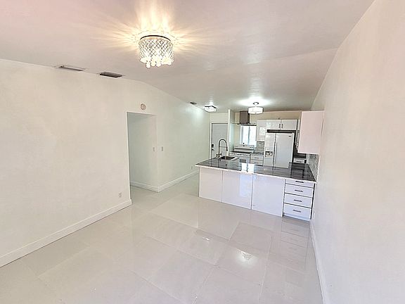 Home features open concept living/dining area. Beautiful white Spanish Porcelain flooring. Nice kitchen with bar. 2 remodeled bathrooms. The bedrooms each have laminate floors and ceiling fans.