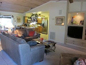 Deep water access,no bridges,cbs 3 bedroom 2 bath + office,fully furnished home with beautiful wood ceilings,enjoy your screened in patio with swim spa and tiki bar.