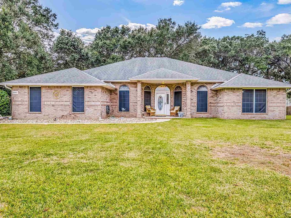 If you’re looking for a home with space and thoughtful upgrades, this one has it all, including a whole-home gas generator and an impressive list of features! The property is equipped with a central vacuum, alarm system, whole-house generator (Nov 2023), three-year-old water heater, hurricane fabric shields and panels, a shed, a workshop with electric and A/C, a solar-powered attic fan, and a solar tube in the kitchen for added natural light, everything you need! Arriving at the home, you’ll notice the side-entry two-car garage and welcoming curb appeal. Step inside through the foyer, where a formal dining room sits to the left and an office to the right. The living room features high vaulted ceilings and decorative ledges throughout the main living areas, including the living room, kitchen, dining room, and office, along with a cozy gas fireplace. The kitchen features white cabinetry, a gas stove, an island, and soaring ceilings, enhanced by the solar tube that fills the space with natural light. Just off the kitchen is an additional living area, perfect for casual gatherings or a TV room, framed by two sets of French doors. The split floor plan ensures privacy, with the primary suite located on one side of the home. The spacious bedroom easily accommodates a king-sized bed and sitting area, while the ensuite bath offers double vanities, a soaking tub, a separate shower, a water closet, and two walk-in closets. A private guest suite sits apart from the main bedrooms and includes its own access to a full bath, ideal for visitors or extended stays. The two additional bedrooms are generously sized and share a full bathroom with a single vanity and tub/shower combination. Step outside to enjoy the open patio overlooking the large backyard, with plenty of space for entertaining, gardening, pets, or even a future pool. A storage shed adds extra room for tools, décor, or outdoor equipment. Are you starting your next chapter and creating lasting memories?