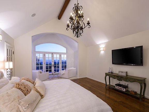 Gated Country English mini compound located in the sought after Hollywood Dell neighborhood on a flat cul-de-sac with city + Hollywood sign views! Meticulously updated with only the finest finishes + details, this ~4,300 sqft, 4 bd/4 bth home boasts a large formal dining room, stunning formal living room with vaulted ceilings + stained glass window overlooking the city. A beautiful chef's kitchen opens to the breakfast area + family room with picturesque french doors leading out to the manicured courtyard-perfect for al fresco dining + entertaining. A romantic master suite with high ceilings, complete with a sitting area, all overlooking the city views, charming master bath with a soaking tub + 2 master closets. Across the hall are 2 additional guest rooms + laundry room. On the lower level is a bonus study, wine cellar, + cozy en-suite fourth bedroom with a fireplace + private patio. A tiered view hillside yard is perfect for a vegetable/herb garden or sunset yoga. Great location!