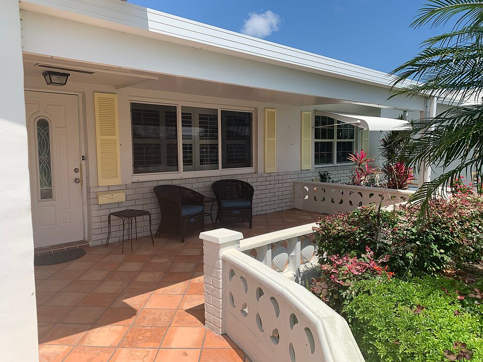Exquisite 2Br/2Ba Edgewood Model with full florida room. Paid up recreation lease in full. This home is better than new. Neutral tile thru out. Tile Roof replaced 2012/Flat 2010. Kitchen cabinetry all replaced plus extra cabinetry. Dual Pantries with pull outs. Granite counter tops and backsplash. Appliances replaced. Pendant lights plus 5 ceiling fans. Fla room photo virtually staged. Plantation shutters thru out. Tile front porch has insulated roof plus back patio. Both baths renovated. Built in Murphy Bed in guest room stays.Insulated windows thru out and front living room hurricane rated. Louvre closet doors. A/C replaced 2009. Vents in both baths and both bedroom closets. Close to R3 Clubhouse and Pool. Beautiful home..A Must see...