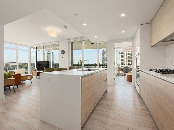 *Tenant Moved Easy To Show Now* Welcome to SOLO DISTRICT 3, a bright and modern 2-bedroom, 2-bathroom + 2 Huge balconies and corner unit in Burnaby North. Enjoy breathtaking panoramic views of the mountains and city skyline from this spacious home, which features an open-concept design, a sleek kitchen with stainless steel appliances, and elegant stone countertops. The master suite includes a walk-in closet and a luxurious ensuite, while the second bedroom offers ample space and easy access to the second full bathroom. Step outside to your private balcony, perfect for relaxing and taking in the views. One Parking, and access to building amenities such as a fitness center and clubhouse. Conveniently near Skytrain, top schools, and a variety of shops and restaurants! Open Sat/ Sun 22/23 2-4