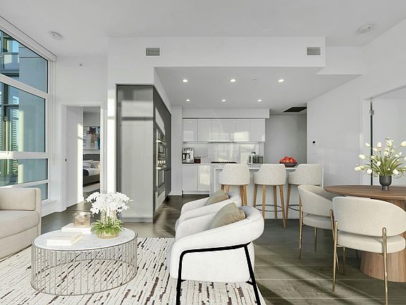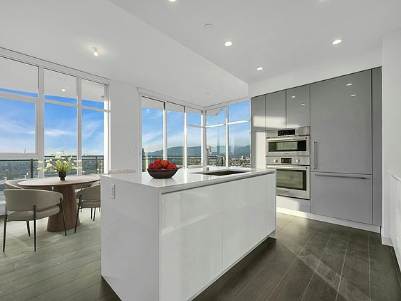 Corner unitOpen-concept layoutSleek island kitchenPremium bosch appliancesQuartz countertopsBreathtaking north-facing mountain viewsExpansive large balcony