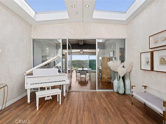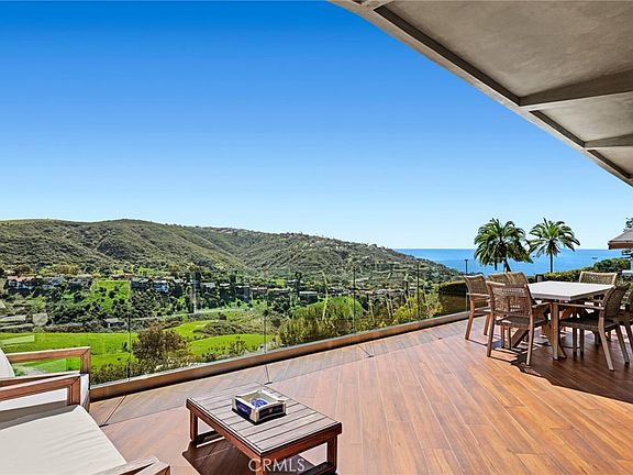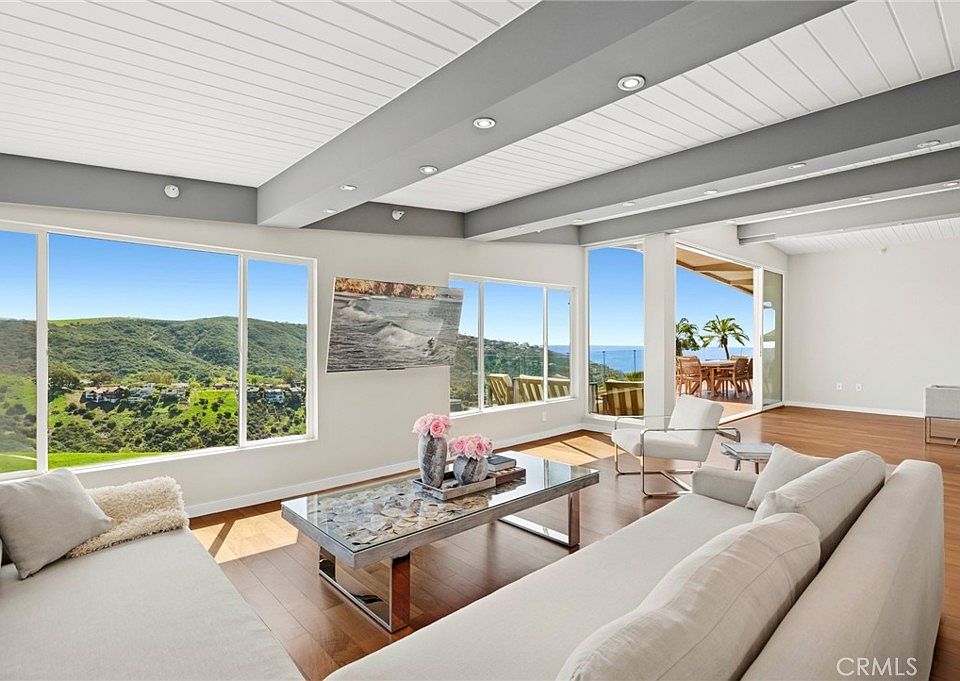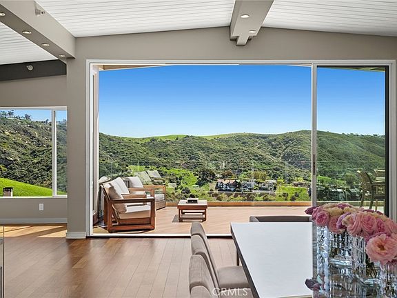 Discover coastal luxury at its finest with this stunning 5 bedroom, 4.5 bathroom contemporary residence in Laguna Beach. This breathtaking home seamlessly combines luxury with modern design, offering sweeping canyon and ocean views. Spanning 3,809 square feet, this architectural masterpiece blends indoor-outdoor living with elegance. Step through the grand foyer, illuminated by natural light, into an open-concept main level. Upon entry, you’re greeted by stunning Brazilian Walnut hardwood floors and high beamed ceilings creating an inviting ambiance. The gourmet kitchen is a chef’s dream featuring Caesarstone Quartz countertops, a commercial-grade gas stove and a Viking refrigerator. The main floor is home to the luxurious primary suite with its own private balcony, oversized walk-in closet, and a spa-like 5-piece ensuite bathroom. Two additional guest bedrooms and a full bath complete the main level, while the open living and dining areas are perfect for entertaining. Expansive glass sliders frame breathtaking vistas and ocean breezes into the main level. Downstairs, you’ll find two bedrooms complete with ensuite bathrooms and walk-in closets. Additionally, there is a versatile space that could serve as an office, gym, or additional living room. This level leads to a flat backyard designed for outdoor entertaining. The property also features a multi-car circular driveway with space for 5 additional cars and a two-car garage with direct access for added convenience. With its unmatched style, stunning views, and ideal location, this Laguna Beach gem offers the ultimate coastal lifestyle. Located just minutes from Laguna Beach’s pristine coastline, world-class dining, shopping, and entertainment, this home offers the perfect blend of tranquility and accessibility.