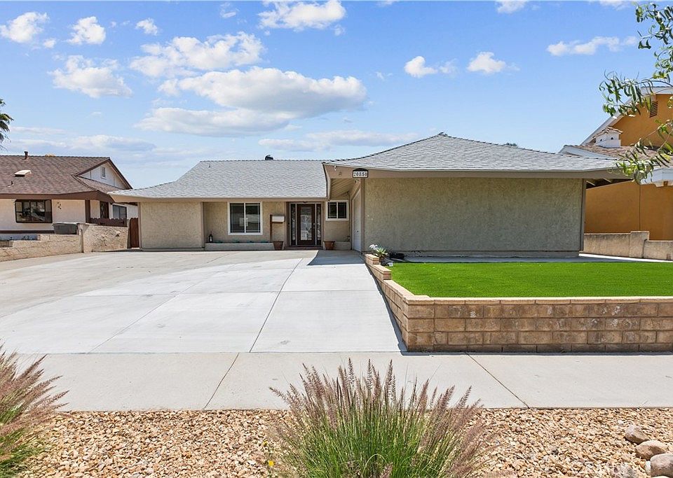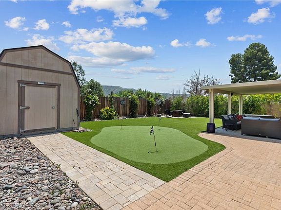 Nestled in the city of Saugus, this darling 3 bedroom, 2 bathroom Single Story home is just waiting for you! Step into the spacious kitchen featuring an abundance of storage and counter space, wine refrigerator and wine rack, and a bar top open to an oversized living room. Inside the home you will find a combination of laminate and tile flooring for the ease of cleaning. There is lighting throughout the home via ceiling fans, recessed lighting and more. Just down the hallway you find new laminate flooring, baseboards and fresh paint. The garage includes the laundry and built ins for a wonderful work space. The backyard is an absolute dream. Meticulously kept bricks and pavers outline the turf and putting green as well as provide a walkway to the walk-in shed. It has some dream upgrades including turf with drought tolerant landscaping in the front, plus turf and a PUTTING GREEN in the backyard, along with an above ground jacuzzi and PAID OFF Solar. Beautifully lit in the evening, there is also a fire pit and sitting area in the corner of the yard. This home is close to elementary, junior high and high schools’ in addition to grocery stores, shopping centers and restaurants. A quick connection to Golden Valley Road will have you at the freeway in no time if work calls you away from Santa Clarita. Don't miss this great opportunity.