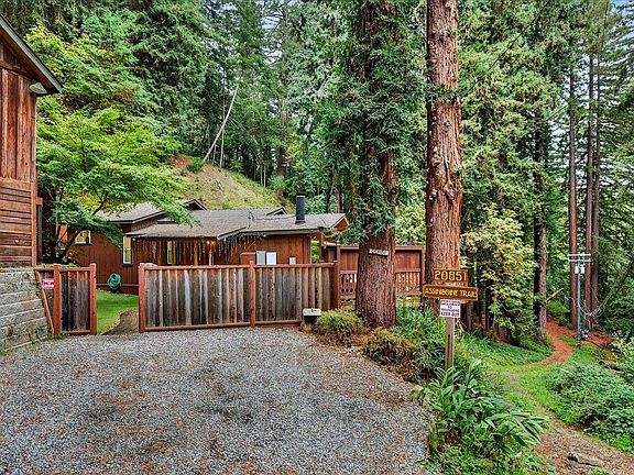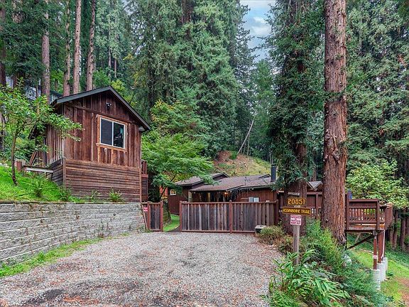 Discover your own slice of paradise in the Los Gatos Hills. This enchanting property features 2 bedrooms plus office, 1.5 bathrooms and a separate studio, backing to pristine forest and trails. The light-filled living room features a dramatic wall of windows opening to a large, sunny deck, blending indoor/outdoor living. Beautifully updated gourmet kitchen shines with custom wood cabinetry, a center island, new LG appliances, including a double oven and gas range, and a large walk-in pantry with washer and dryer. The tranquil primary suite includes walk-in closet and a tiled shower bathroom. A second bedroom and dedicated office provide versatile space. Outside, you'll find a restored original mtn cabin for guests, art room gym or home office. Enjoy the private deck overlooking the lush forest and Los Gatos Creek, providing a serene escape and hiking into the watershed below. Home is equipped with a tesla power wall and has been updated throughout including new roof. Comcast internet available. Friendly community offers hiking trails, a playground, and a clubhouse. Prime location minutes to downtown LG, close to Lexington Reservoir, with best Los Gatos schools featuring Lexington Elementary (International Baccalaureate Program), Fisher Middle and Los Gatos High.
