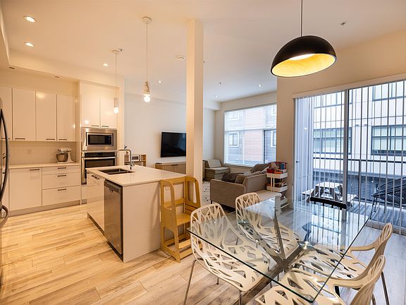 THE BOULEVARD. Welcome to this stylish 2 bed, 3 bath home located right in vibrant Willoughby Town Centre. The main floor impresses with 10 ft ceilings, a chef-inspired kitchen with quartz counters, wall oven, gas cooktop and pantry, and a bright open layout that extends to a private deck. Upstairs, the primary bedroom features a walk-in closet and a well-appointed ensuite, accompanied by a second bedroom and full bath. The showstopper is the expansive 384 sq.ft. rooftop deck, offering the perfect setting for lounging, hosting, or enjoying the evening skyline. Side-by-side garage, low strata fees, and a pet-friendly community with a clubhouse. All within walking distance to shops, cafés, dining, green spaces, schools and transit, with quick connections to Hwy 1 and Carvolth exchange.