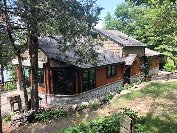 Wow! What a breathtaking view! You are going to love relaxing at the lake from your private paradise. This is truly an amazing property and sold FULLY FURNISHED! Over 250' of shoreline on the Horseshoe Chain of Lakes...14 connected lakes for miles and miles of boating, fishing, and lake fun! This home has been completely updated and remodeled by the current owners over the past 10 years. Newer roof, siding, windows, landscaping, and a complete interior remodel! You will simply love this newer kitchen and great room with all those amazing lake views. Remodeled with new cabinets, stainless steel appliances, granite tops, new flooring, ductless mini-split AC, and updated bedrooms and bathrooms. Walk down to the lake and relax at your own beach house, complete with roof-top deck. The beach is accessible by the beautiful stone steps or paver cart path! Take a golf cart to the dock if you want! Beautiful Dock system is included!!! Dock is included and the newer golf cart is negotiable. This is located on Kron's Bay, which is one the most desirable locations on the Chain of Lakes! Boat over to Rich Spring Golf Club (18 holes) with complete restaurant dining and docks for your boat parking! Just a short 60–90-minute drive from the Twin Cities Area and you are relaxing at the Lake!