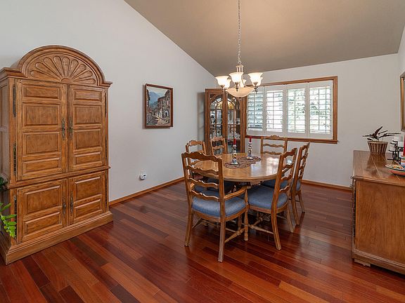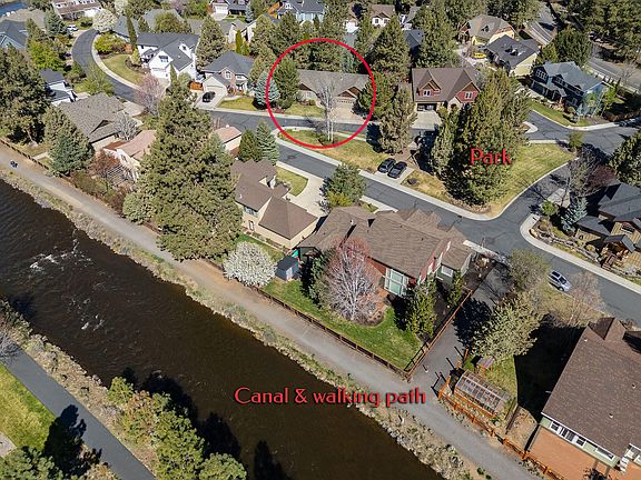 Situated on a beautifully landscaped ¼-acre lot, this well maintained single-level home in this custom home community offers serene living. Expansive shaded patio with gas fireplace overlooking the private mature landscaped back yard provides the perfect setting for outdoor relaxation and entertaining. Step inside to soaring vaulted ceilings and rich Brazilian cherry wood floors. The chef's island kitchen seamlessly connects to the family room with cozy fireplace—ideal for modern living and gatherings. A second fireplace in living rm provides warmth and charm. Plantation shutters offers timeless style and privacy. Home features accessible wide interior doorways and a primary suite with a roll-in shower, double vanity, and a large walk-in closet. The oversized three-car garage provides ample storage. Relax on the covered front porch overlooking a park and mere steps to canal with miles of scenic trails. This home combines luxury, comfort, and functionality in one exceptional package